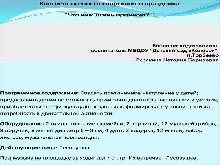 Портфолио Резакиной Наталии Борисовны воспитателя МБДОУ «Колосок» Торбеевского муниципального района