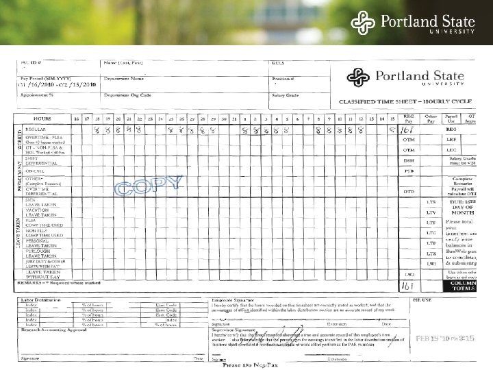Portland State University Classified Online Timesheet Training