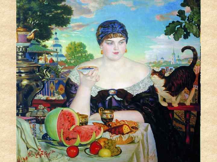 «Купчиха за чаем» Борис Кустодиев, 1920 • Алиментарно-конституциональное ожирение