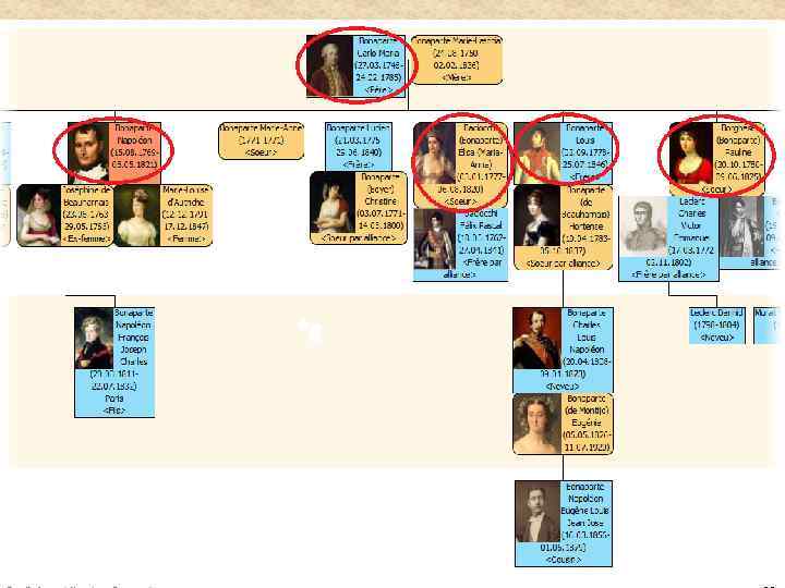 • Семья Наполеона Бонапарта – яркий исторический пример наследственного рака желудка. Наполеон Бонапарт умер в возрасте 52 лет, во время 6 -летней ссылки на о. Св. Елены (1821 г. ). Результаты вскрытия описывают перфорацию злокачественной опухоли желудка. • Дед Наполеона, предположительно умер в 40 летнем возрасте от РЖ • Отец умер в возрасте 39 лет, РЖ подтвержден при вскрытии • Брат и 3 сестры умерли в возрасте от 43 -65 лет от РЖ