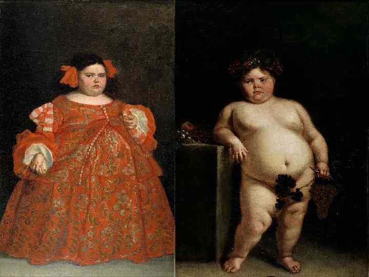 «Еухения Мартинес Вальехо (по прозвищу Ла Монструа) одетая» «Еухения Мартинес Вальехо обнажённая» Карреньо де Миранда, ок. 1680 • Ожирение при синдроме Прадера-Вилли