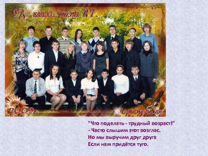 "Что поделать - трудный возраст!" - Часто слышим этот возглас. Но мы выручим друга Если нам придётся туго.