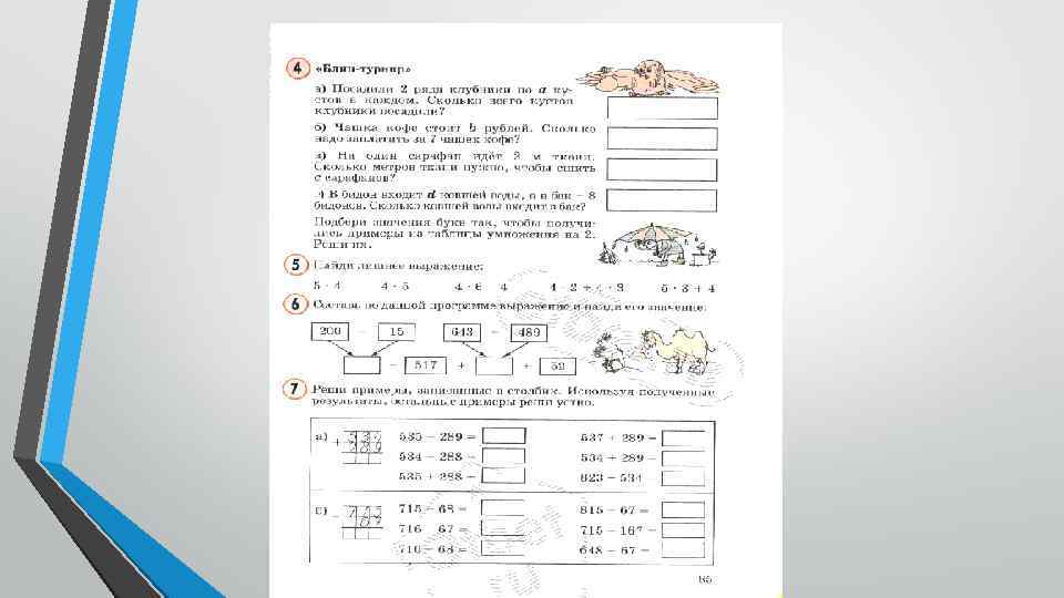 При знакомстве детей с таблицей умножения даются следующие упражнения: