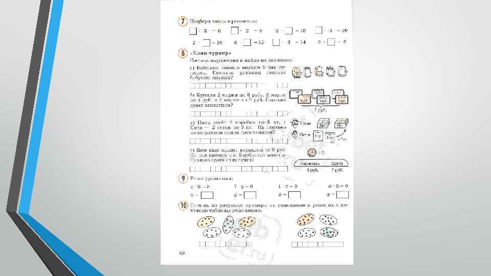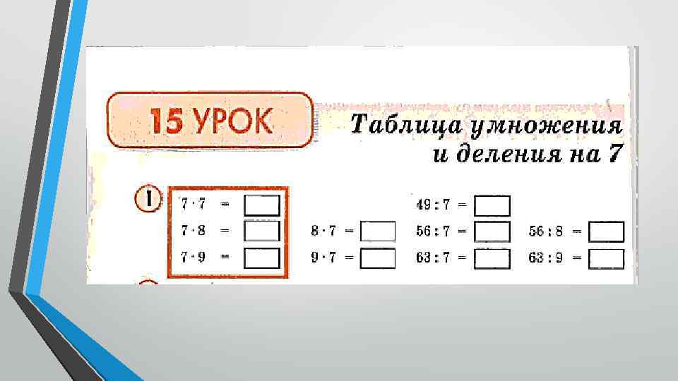 На данном уроке учащиеся знакомятся с таблицей умножения, но представленная таблица заполнена не до конца. Поэтому учащимся предлагают задание (см. на рисунок)