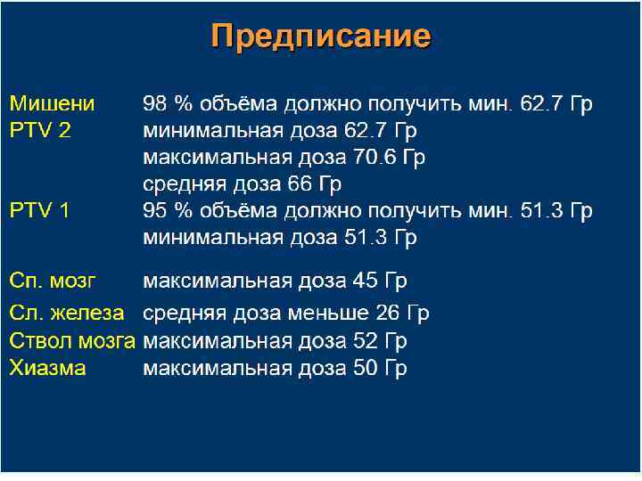 Получение изображений и локализация мишени облучения Каждое отделение ЛТ должно иметь протокол для получения изображений для различных частей тела пациента с целью определения GTV, CTV, PTV and PRV • получение КТ изображений пациента в лечебном положении • Совмещение КТ изображений пациента в лечебном положении с имеющимися в наличии другими изображениями (ЯМР, ПЭT)