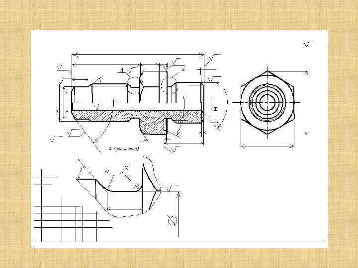 4 -й этап- проверка и окончательное оформление эскиза: • внимательно осматривают эскиз, вносят поправки, если таковые потребовались; • заполняют основную надпись (записывают материал); • проставляют технические требования (термообработка, покрытие и т. п. )