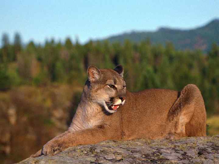 Пума Пумы обитают от юга Канады до Огненной Земли у самого конца Южной Америки. Вес некоторых пум доходит до 90 кг. Шерсть у пумы бывает всех оттенков. От песочно- коричневого до серого. Пума отлично лазает по деревьям и обрывам. Котят пумы рожают высоко в горах, в пещерах. Обычно пумы охотятся на земле, но в случае необходимости ловко взбираются за добычей на деревья.