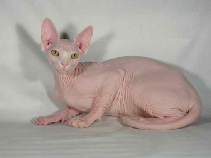 Сфинкс Известны как голые кошки. Первое упоминание о них относится к временам ацтеков, а на выставках они впервые появились в 1924 г. В 1987 г. в Ростове-на-Дону появилась первая российская голая кошка. Так выявилась новая порода -Донской Сфинкс. Донской сфинкс - порода молодая, но ее развитие идет очень быстро. В последние годы дончаки стали известны во многих странах мира. Многие животные обрели своих хозяев в США, Израиле, Германии, Чехии, Бельгии, Польше, Венгрии, Китае.