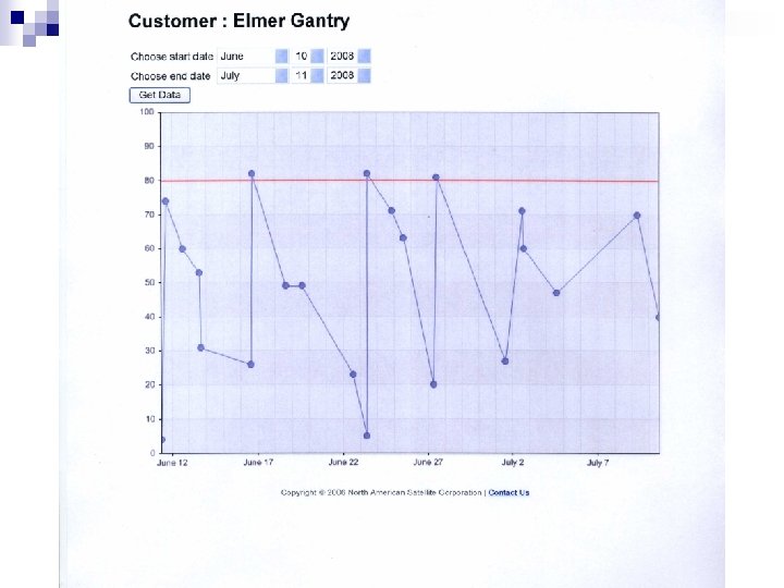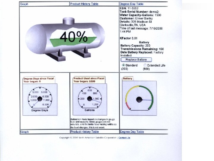 Sky. Tracker™ Firmware Engineering n n n Standard Reporting – When tank is filled, at 10% drop, critical lows, out-of-ordinary events (stuck float, end-user away from home, excessive use), and every third day Optional Reporting – Daily or Twice per day, Vertical (linear) tank, Bulk/Transport storage (10, 000 W. C. – 90, 000 W. C. ), Capacitance (non-pressurized fluids) Ground Station 10 x Amplification of Sky. Tracker™ transmission will enhance coastal areas (Fall 2008) – will apply to all units currently in the field