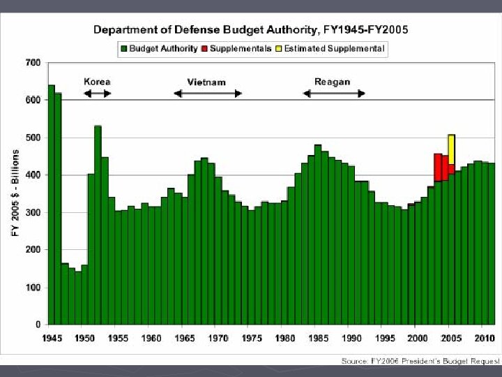 Harry S. Truman (D) (1945 -1953) Containment } Truman Doctrine § Provide economic and military support for nations threatened by communism § Greece and Turkey } National Security Act (1947) § Department of Defense § National Security Council (NSC) § Central Intelligence Agency (CIA) } NSC-68 (1950) § Justify defense spending and arms buildup as necessary § Establish alliances with noncommunist nations