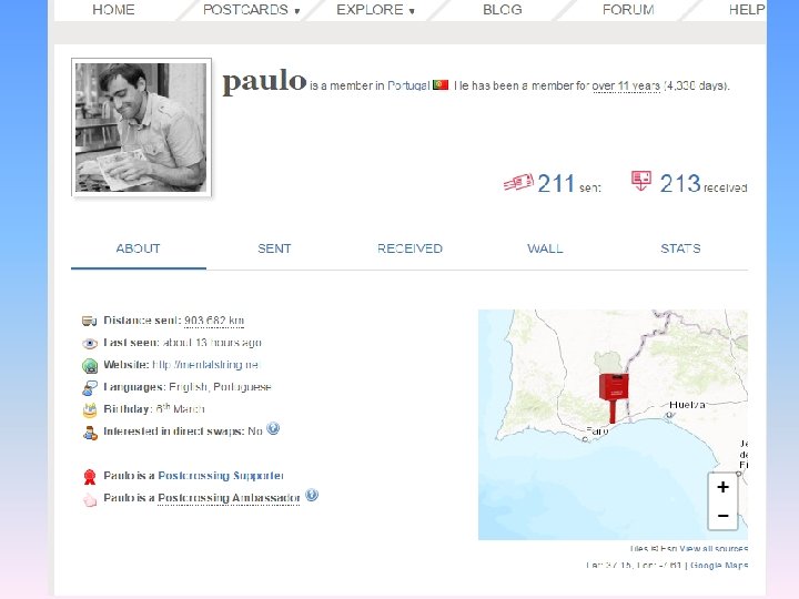 The project • The goal of this project is to allow people to receive postcards from all over the world, for free. Well, almost free! The main idea is that: if you send a postcard, you will receive one back from a random Postcrosser from somewhere in the world. • Why? Because, like the founder, there are lots of people who like to receive real mail. • The element of surprise of receiving postcards from different places in the world (many of which you probably have never heard of) can turn your mailbox into a box of surprises - and who wouldn't like that?