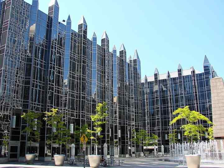 Небоскрёб корпорации PPG в Питтсбурге США, 1979 -1984 гг. Арх. Ф. Джонсон, Д. Берджи