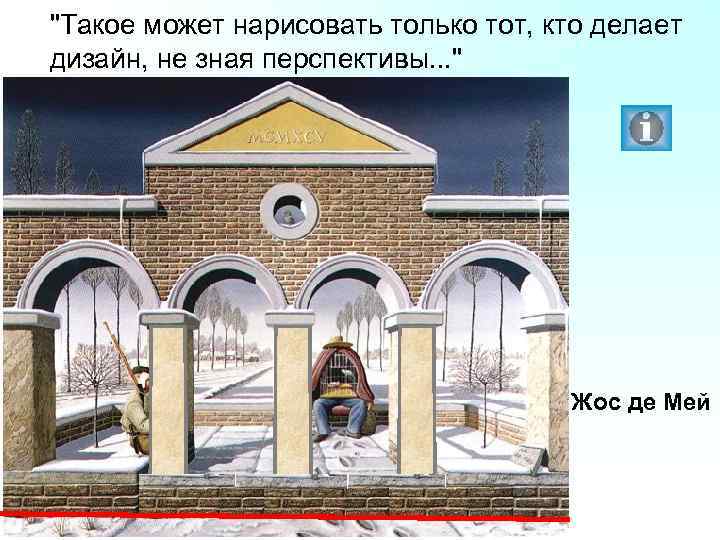 "Такое может нарисовать только тот, кто делает дизайн, не зная перспективы. . . " Жос де Мей