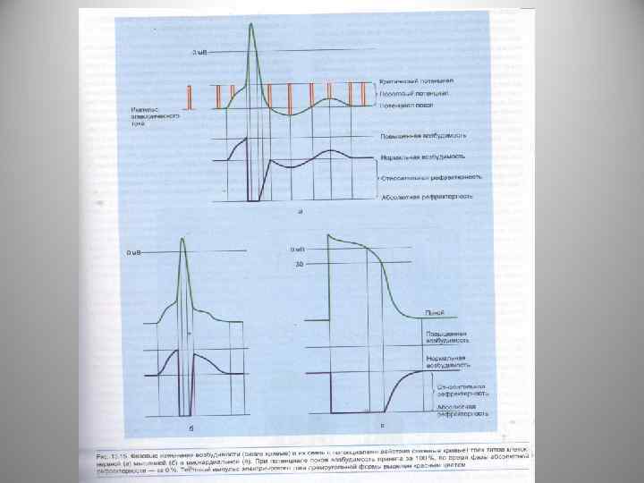 Изменение мембранного потенциала в зависимости от силы раздражения а – потенциал покоя; б – пассивный электротонический потенциал; в – локальный ответ; г - потенциал действия