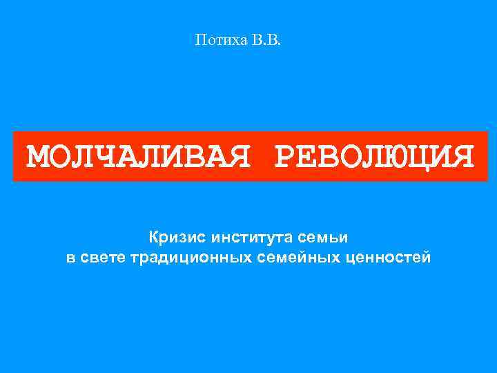 Потиха В. В. МОЛЧАЛИВАЯ РЕВОЛЮЦИЯ Кризис института семьи в свете традиционных семейных ценностей