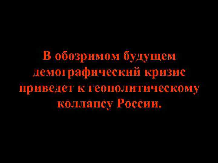 В обозримом будущем демографический кризис приведет к геополитическому коллапсу России.