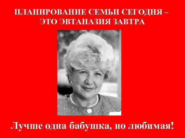ПЛАНИРОВАНИЕ СЕМЬИ СЕГОДНЯ – ЭТО ЭВТАНАЗИЯ ЗАВТРА Лучше одна бабушка, но любимая!