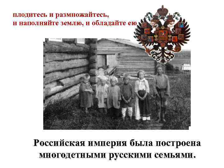 плодитесь и размножайтесь, и наполняйте землю, и обладайте ею Российская империя была построена многодетными русскими семьями.