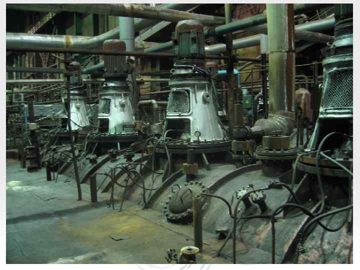 Процесс выщелачивания осуществляется в непрерывном режиме в автоклавных агрегатах, каждый из которых представляет собой каскад из 4 -х последовательно соединённых горизонтальных автоклавов с механическим перемешиванием. Геометрическая вместимость каждого автоклава 125 м 3, вместимость по футеровке – 90 м 3, рабочая вместимость – 65 м 3. Автоклавы разделены внутренними перегородками на 2 секции. Каждая секция автоклава оборудована двумя перемешивающими устройствами с 2 -х ярусными мешалками, включающими аэрирующее устройство для насыщения пульпы кислородом. Мощность каждой мешалки автоклавов 100 к. Вт, скорость вращения – 196 мин. -1