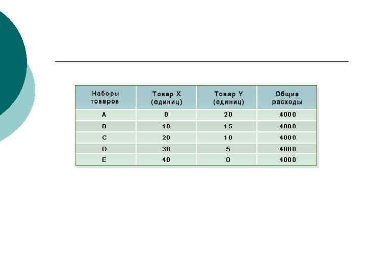 При изменении цен и доходов меняется положение бюджетной линии. Бюджетная линия : сдвигается вправо, если доход потребителя увеличивается или если происходит равное снижение цен двух товаров; сдвигается влево, если доход потребителя уменьшается или если происходит равное повышение цен; меняет угол наклона, если цены товаров изменяются непропорционально. Оптимальный набор должен отвечать двум требованиям: его координаты должны находиться на бюджетной линии; б) он должен быть предпочтителен по сравнению с другими. а)