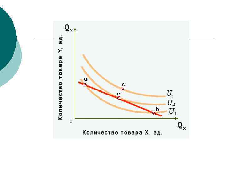 Кривая безразличия (U) представляет собой совокупность потребительских наборов, каждый из которых имеет одинаковую полезность для потребителя