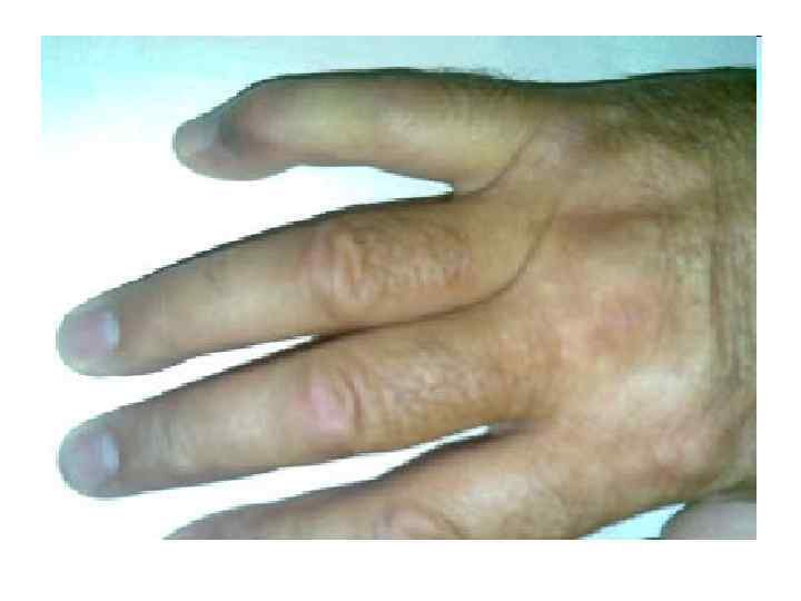 Клиника • Боль, припухлость и ограничение функции пальца. При наличии смещения заметна деформация. При переломах без смещения признаки повреждения могут укладываться в картину растяжения или ушиба. Поэтому рентгенологическое исследование обязательно даже при подозрении на перелом.