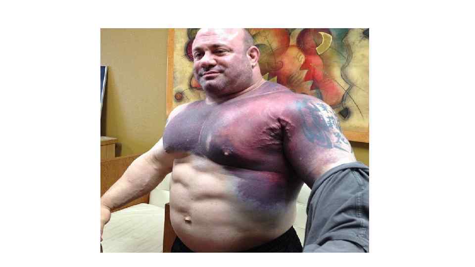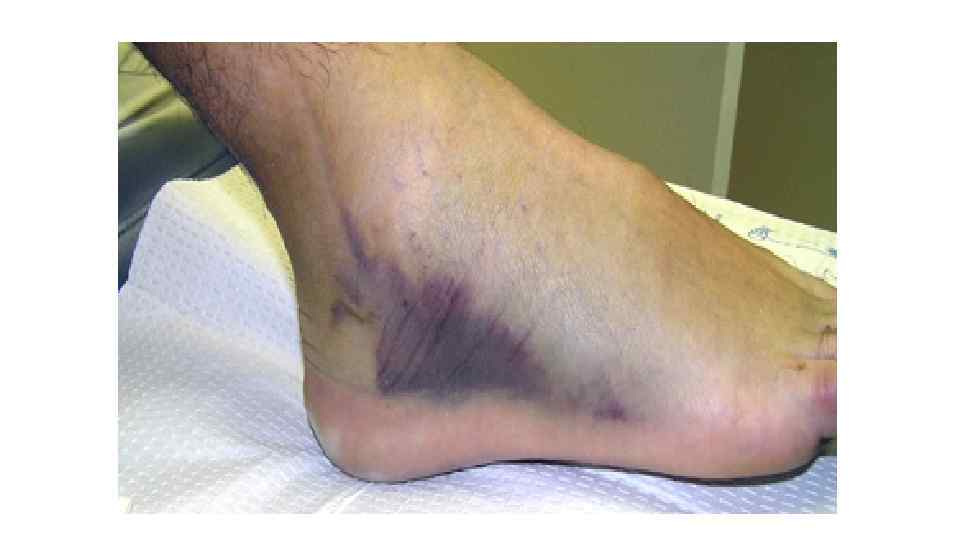 3) Разрыв • Нарушение анатомической целостности тканей, вызванное силой, превышающей их эластические возможности. • К: боль, отек, старается беречь место травмы. • О: обширное кровоизлияние, патологическое увеличение объема движений в суставе, резкое нарушение функции конечности. • Если разрыв мышцы, то можно увидеть брюшко мыш. культи (при сокращении) • Д: Rg для искл. перелома