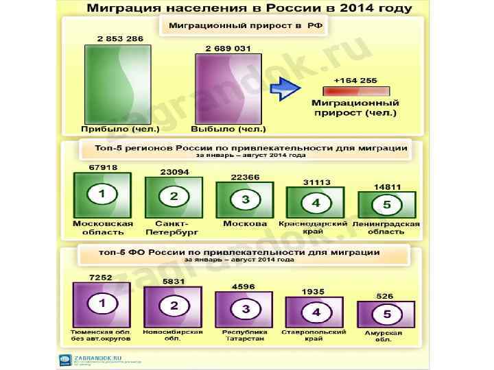 Разность между числом прибывших в страну и числом выбывших за ее пределы за определенный срок называется миграционным приростом. Он рассчитывается так же, как естественный прирост.