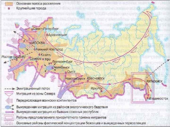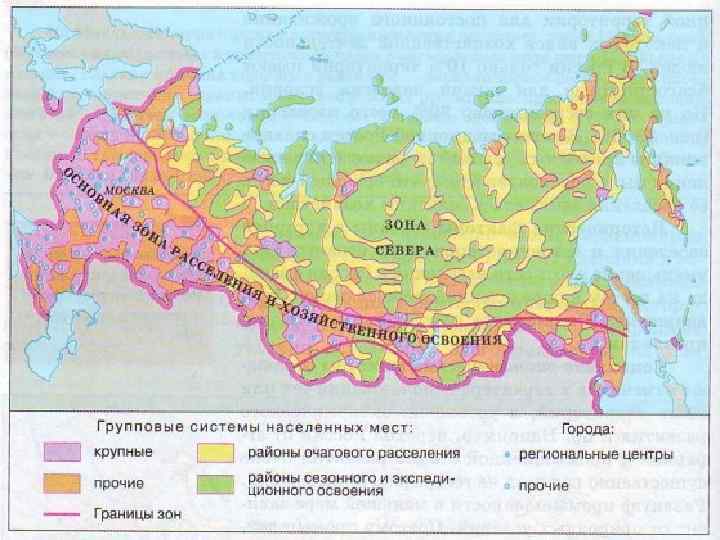 Какой из обозначенных на карте России городов расположен в пределах главной полосы расселения?