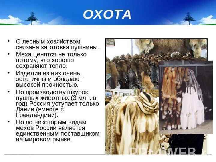 Рыбное хозяйство — это добыча и разведение рыбы, морепродуктов, морского зверя и их переработка. В России 90% вылова рыбы и морепродуктов приходится на морской промысел. Лов рыбы осуществляется в нескольких рыбопромысловых бассейнах: ü Северном, üЗападном üКаспийском ü Дальневосточном. Каспийский бассейн специализируется на добыче осетровых рыб и каспийской кильки. В Дальневосточном бассейне вылавливают минтай, сайру, лососевых, в Северном — треску, морского окуня, палтуса.