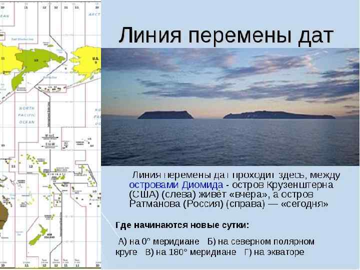 ПОЯСНОЕ ВРЕМЯ – это время в границах одного часового пояса. üЗа нулевой принят часовой пояс, по середине которого проходит Гринвичский меридиан. üЭтот же пояс служит 24 -м, ü От нулевого пояса ведут счет часовым поясам следуя с запада на восток. üНачало новых суток условно считают от 12 -го часового пояса. üЧерез его середину проходит меридиан 180°, считающийся линией перемены дат и указывающий также на переход из Восточного полушария в Западное, и наоборот. Пересекая эту условную линию, мы попадем из одних суток в другие.