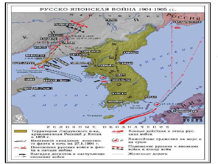 Активность России на Дальнем Востоке • 1894 - японско - китайская война. Китай уступает Ляодунский полуостров • Россия, Германия, Франция требуют отказаться от аннексии полуострова • 1896 - союз Китая и России против Японии. Строительство КВЖД • 1898 - Россия получила Порт -Артур для военной базы • Экспансия Китая Западными державами политика « открытых дверей» Россия ввела войска в Маньчжурию, Договор Англия, Япония и США в 1902 год 1904 год - разрыв отношений между Японией и Россией и нападение на Порт -Артур