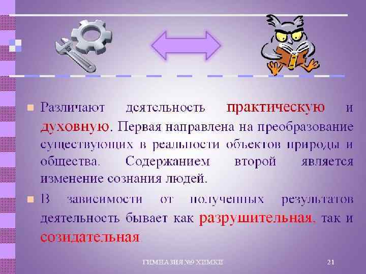 Элементы психики • Привычки – приобретенные человеком способы автоматического, неосознанного удовлетворения потребностей. • Мотивы – осмысленные побудители действий. • Темперамент – тип психического склада человека (сангвиник, холерик, флегматик, меланхолик). • Воля – способность человека делать что-либо даже вопреки желанию, преодоление препятствий. • Разум – способность рассуждать, мыслить предметы и связывать их.