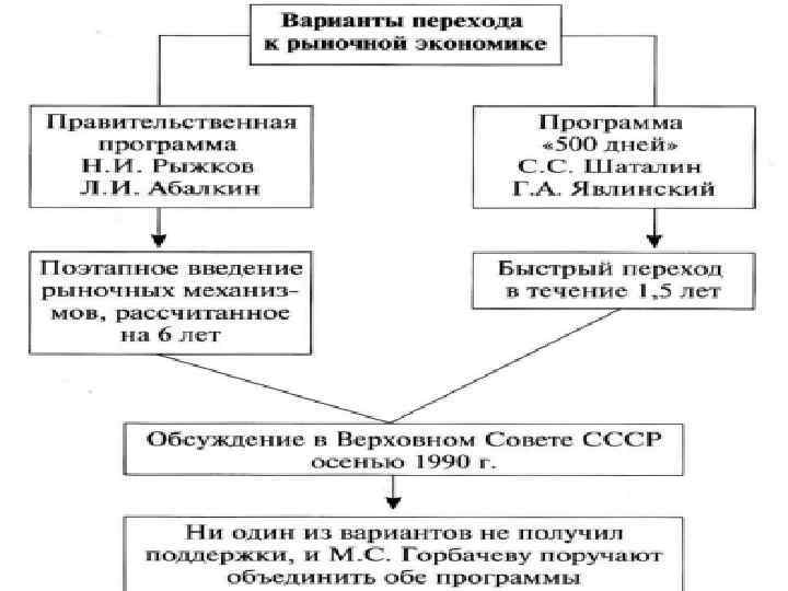 4. Программа « 500 дней» Скорректированная программа предусматривала переход СССР к рынку к 1997 г. Однако этот план не был даже обсужден из-за осложнения политической ситуации В июне 1991 г. Президентом России был избран Б Н. Ельцин. Его избрание трактовалось как поддержка почти 60% участниками выборов курса на радикализацию и ускорение экономических реформ