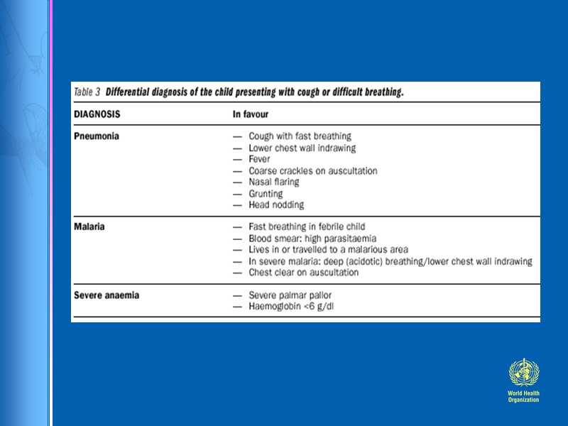 Пример: дифференциальный диагноз при кашле и затруднениях дыхания Пневмония Бронхиолит Малярия Тяжелая анемия Сердечная недостаточность Туберкулез Коклюш Инородное тело Круп ……