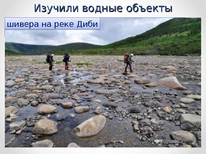 Изучили водные объекты ледниковое озеро Дозор-Нурледниковое озеро Эхой расположено на высоте 2600 м река Саган Гол в горной долинешивера на реке Диби