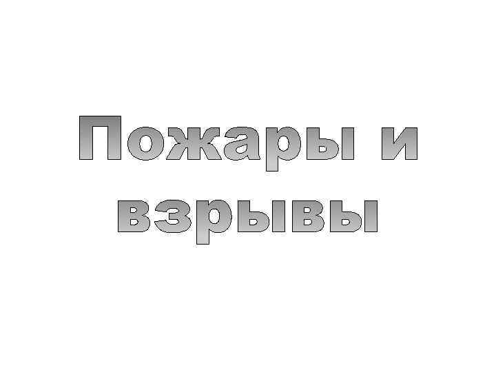 КЛАССИФИКАЦИЯ ПОЖАРОВ И ВЗРЫВОВ(ГОСТЫ) Существует огромное количество классификационных признаков возгораний, выделяют множество видов и типов пожаров, однако наибольший интерес представляет классификация в зависимости от вида горящих веществ и материалов: • Пожар класса «А» — горение твердых веществ • А 1 — горение твердых веществ, сопровождаемое тлением (например, уголь, текстиль); • А 2 — горение твердых веществ, не сопровождаемых тлением (например, пластмасса). • Пожар класса «B» — горение жидких веществ • • • Пожар класса «C» — горение газообразных веществ Горение бытового газа, пропана и других. -Пожар класса «D» — горение металлов D 1 — горение легких металлов, за исключением щелочных (например, алюминий, магний и их сплавы); D 2 — горение щелочных металлов (например, натрий, калий); D 3 — горение металлосодержащих соединений (например, металлоорганические соединения, гидриды металлов).