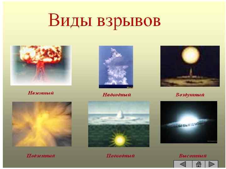 Классификация взрывов По происхождению выделившейся энергии различают следующие типы взрывов: • Химические взрывы взрывчатых веществ — за счёт энергии химических связей исходных веществ. • Взрывы ёмкостей под давлением (газовые баллоны, паровые котлы, трубопроводы) — за счет энергии сжатого газа или перегретой жидкости. К ним, в частности, относятся: • Взрыв расширяющихся паров вскипающей жидкости (BLEVE). • Взрывы при сбросе давления в перегретых жидкостях. • Взрывы при смешивании двух жидкостей, температура одной из которых намного превышает температуру кипения другой. • Ядерные взрывы — за счет энергии, высвобождающейся в ядерных реакциях. • Электрические взрывы (например, при грозе). • Вулканические взрывы. • Взрывы при столкновении космических тел, например, при падении метеоритов на поверхность планеты. • Взрывы, вызванные гравитационным коллапсом (взрывы сверхновых звёзд и др. ).