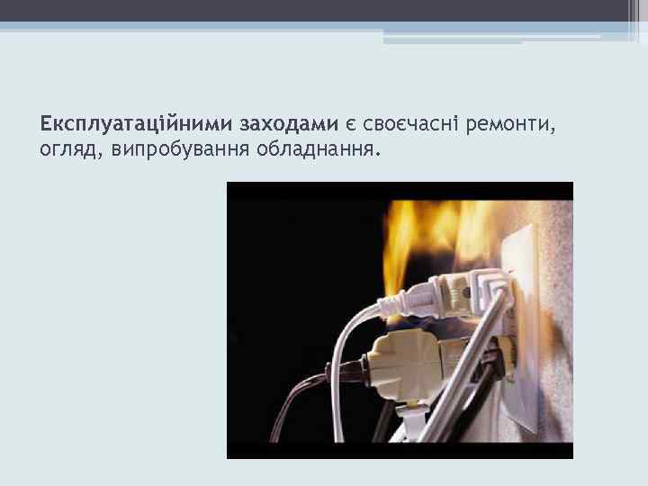 Експлуатаційними заходами є своєчасні ремонти, огляд, випробування обладнання.