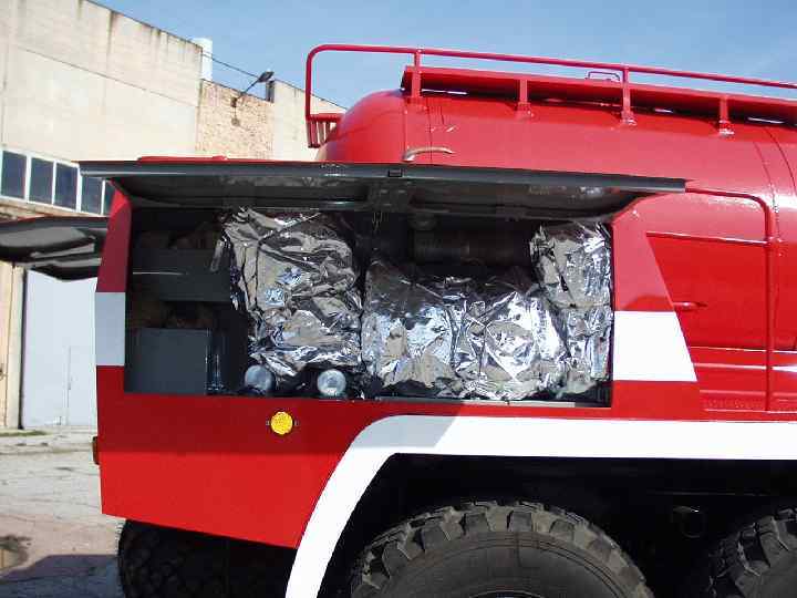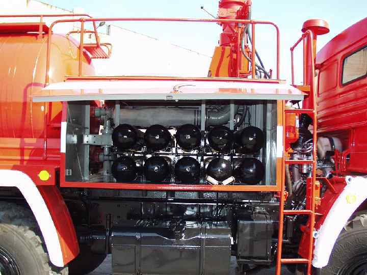 Пожежні автомобілі повітрянопінного гасіння. • Пожежні автомобілі повітряно-пінного гасіння призначені для гасіння пожеж на нафтопереробних та нафтохімічних підприємствах, нафти, нафтопродуктів і інших горючих та легкоспалахуючих рідин в резервуарах та при їх розливі, для об`ємного гасіння / локалізації / пожеж повітряно-механічною піною середньої кратності в підвалах жилих, громадських та виробничих будівель, в кабельних тунелях і полуетажах електростанцій та підстанцій та на інших типових об`єктах. • Вони використовуються для доставки до місця пожежі бойового розрахунку, великого запасу піноутворювача, пінопідйомників, піногенераторів та іншого пожежно-технічного озброєння для забезпечення подачі повітряно-механічної піни середньої кратночсті, а також забору води з вододжерел та подачі піни або води або повітряно-механічної піни через стаціонарний лафетний ствол.