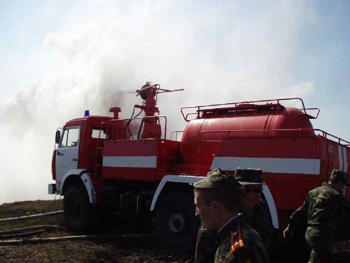 ТТХ автомобілів порошкового гасіння Показники АП-3(130)148 А АП-5 (53213)196 АП-4 (43101) 222 АП-0, 7 (66)122 шасі ЗІЛ-130 Кам. АЗ-53213 Кам. АЗ 43101 ГАЗ-66 Потужність, к. с. 150 Швидкість, км/год 90 100 85 95 Кількість порошку, кг 3000 6000 4000 700 Продуктивність лафетного стволу, кг/с 20 30 80 -- Дальність струменю з лафетного стволу, м 20 30/50 45 -- Продуктивність ручного стволу, кг/с (при рукаві 30 м) 2, 2 3 4, 5 5 Кількість балонів з газом 5 Вага автомобіля, кг 9270 210 115 10 17500 4(азот) 15870 Загрузка порошку Вакуумна Вакуумний насос Ротаційний РВН-40 -350 Розрідження в цистерні, МПа 0, 02 4200