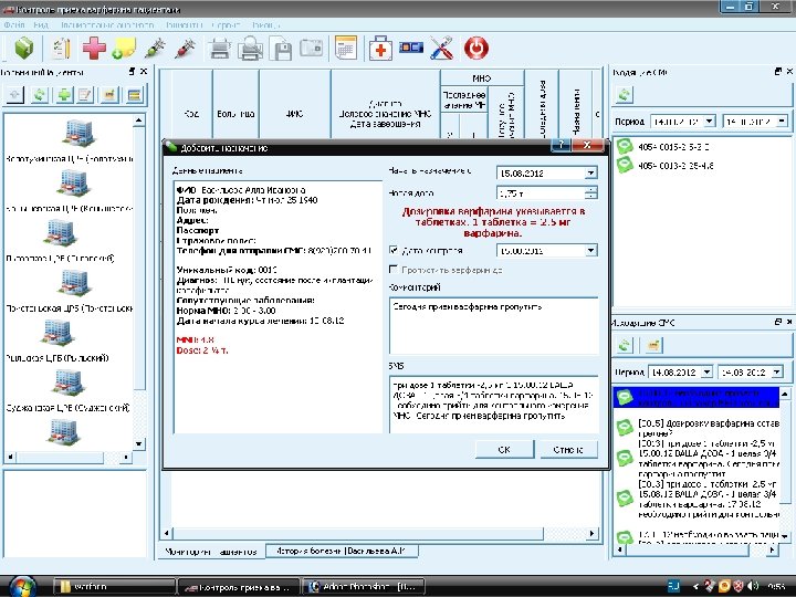 БМУ Курская областная клиническая больница ООО центр медицинской диагностики «Томограф» , Курск, Россия Хруслов М. В. , Лобачев В. И. , Уханова И. Ю. , 2013 г. ПРИМЕР: Контроль МНО при профилактике варфарином в Курской области