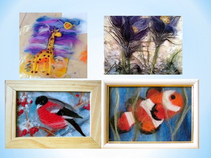 Познакомить детей: - с видами декоративно-прикладного искусства его особенностями и спецификой. - с возможностями декорирования предметов, форм, интерьеров; - с художественными промыслами; - развитие творческих способностей. - развитие мелкой моторики; - ознакомление с основами знаний в области композиции, формообразовании, цветоведении; - формирование потребностей использования графического изображения (наброска, эскиза) на подготовительном этапе и процессе изготовления изделия; - обучение технологии декорирования изделий из шерстяных ниток и шерсти; - формирование собственного стиля в декорировании изделий; - развитие образного мышления, наблюдательности и воображения.
