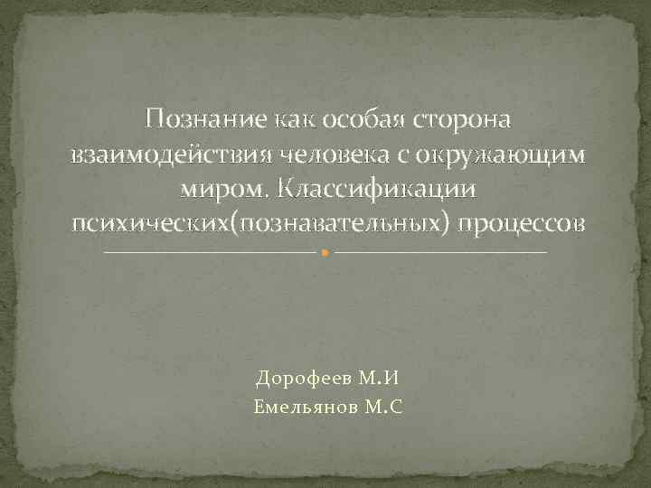 Познание как особая сторона взаимодействия человека с окружающим миром. Классификации психических(познавательных) процессов Дорофеев М. И Емельянов М. С