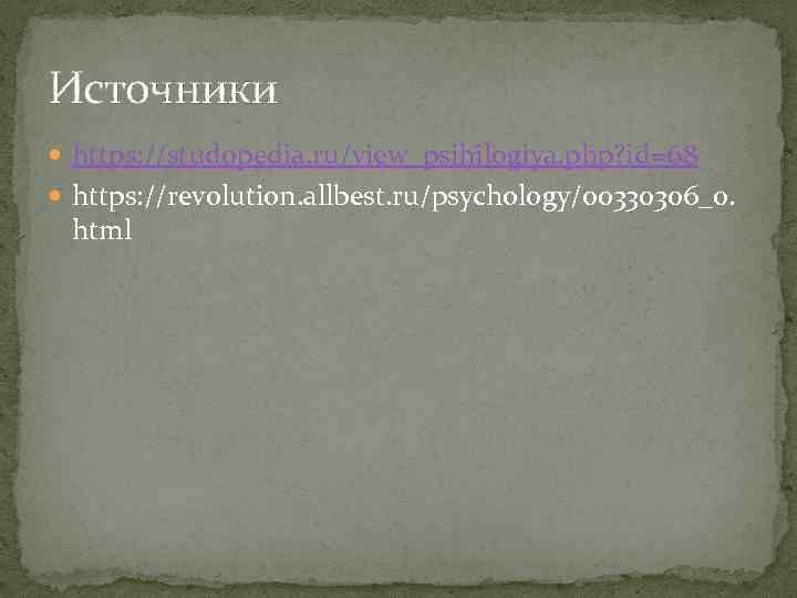 Источники https: //studopedia. ru/view_psihilogiya. php? id=68 https: //revolution. allbest. ru/psychology/00330306_0. html