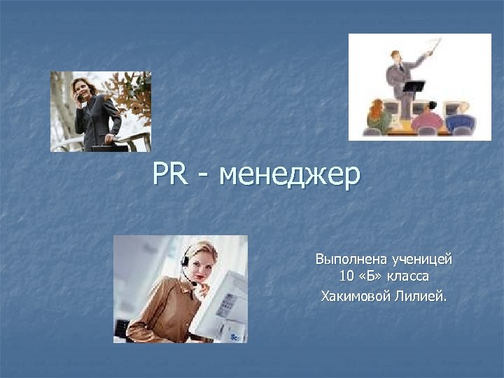 PR - менеджер Выполнена ученицей 10 «Б» класса Хакимовой Лилией.