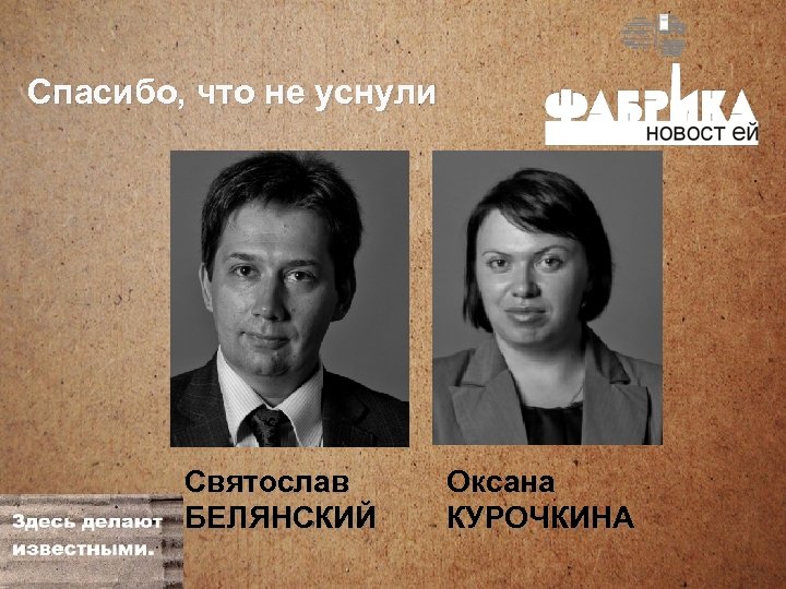 Спасибо, что не уснули Святослав БЕЛЯНСКИЙ Оксана КУРОЧКИНА
