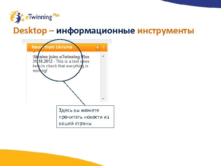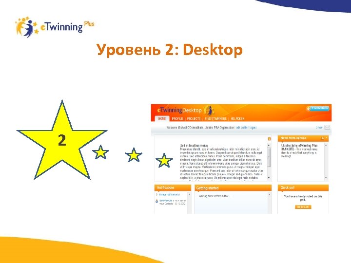 Инструменты Desktop Пользователи, зарегистрированные в пилотной программе e. Twinning Plus, получают доступ к Desktop – територии поиска партнеров, общения с коллегами всех стран Европы, участия в проектах и многое другое…