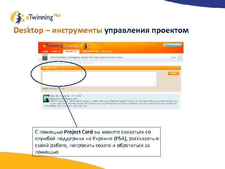 Desktop – инструменты управления проектом С помощью Project Card вы можете связаться со службой поддержки на Украине (PSA), рассказать о своей работе, попросить совета и обратиться за помощью