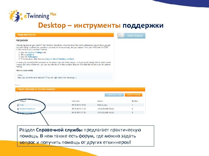 Desktop – инструменты поддержки Раздел Справочной службы предлагает практическую помощь. В нем также есть форум, где можно задать вопрос и получить помощь от других етвиннеров!